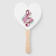 Pink treble clef with delicate, detailed pink Japanese cherry blossoms against white background painted over with light blue paint. Blooming pink sakura.