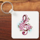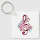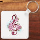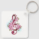 Pink treble clef with delicate, detailed pink Japanese cherry blossoms against white background painted over with light blue paint. Blooming pink sakura.