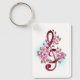 Pink treble clef with delicate, detailed pink Japanese cherry blossoms against white background painted over with light blue paint. Blooming pink sakura.