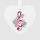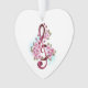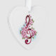 Pink treble clef with delicate, detailed pink Japanese cherry blossoms against white background painted over with light blue paint. Blooming pink sakura.