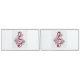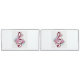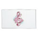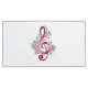 Pink treble clef with delicate, detailed pink Japanese cherry blossoms against white background painted over with light blue paint. Blooming pink sakura.