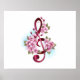 Musical treble clef notes with Sakura flowers Poster