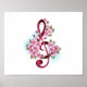 Musical treble clef notes with Sakura flowers Poster