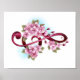Pink treble clef with delicate, detailed pink Japanese cherry blossoms against white background painted over with light blue paint. Blooming pink sakura.