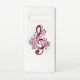 Pink treble clef with delicate, detailed pink Japanese cherry blossoms against white background painted over with light blue paint. Blooming pink sakura.