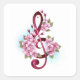 Pink treble clef with delicate, detailed pink Japanese cherry blossoms against white background painted over with light blue paint. Blooming pink sakura.