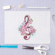 Pink treble clef with delicate, detailed pink Japanese cherry blossoms against white background painted over with light blue paint. Blooming pink sakura.