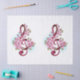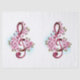 Pink treble clef with delicate, detailed pink Japanese cherry blossoms against white background painted over with light blue paint. Blooming pink sakura.