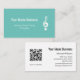 Musical lessons business card, with a white treble clef symbol a teal green background. With customisable lettering, you add your own information. You also add your website to allow for connection with a QR code. Great for promoting your music lessons or performing business.