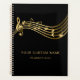 This elegant black musical notes custom yearly planner showcases music staves, a treble clef, and music notes in faux gold. It's the perfect accessory for concert ensembles, professional musicians, music school offices, choir singers, conductors, violin, flute, harp teachers and students, or music lovers. Personalise it with your own text, and easily adjust the font's size and placement using the editing tool. If you need any further assistance with customisation, please don't hesitate to contact us through Zazzle.