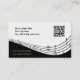 Musician music staff business cards in black and white. This whimsical business card features the stave with the treble clef and notes. The back includes a QR code for more info. Great for a musician, composer, songwriter.