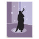 Original design in purple and black. Musician playing chello on the stage