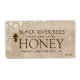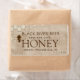 Elegant honey shipping-size label with stylised Western Honeybee on a honeycomb and faux muslin background.
