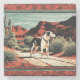 The vintage-inspired color palette and graphic style give it a timeless, artistic feel—perfect for adding character to your home, office, or patio. Whether you're a dog lover, outdoor enthusiast, or drawn to desert scenery, this coaster blends function with standout design.