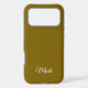 Maintain a sleek and practical look with this warm mustard-colored minimalist phone case featuring your name in an elegant white curved font at the bottom. Designed to fit iPhone 17 and other popular models, it offers daily protection against scratches and bumps while allowing easy access to ports and the camera. The name customization service includes color and font placement options, making this case a truly personal and unique gift.