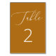 Mustard Brown Minimalist Script Fall Wedding Table Number