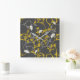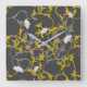 Mustard Grey Floral Square Wall Clock