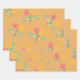 Mustard Retro Daisy Bouquet Pattern Wrapping Paper Sheets. Modern boho vintage with trendy urban floral pattern design by Dreaming Cocoon.