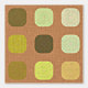 This design features a modern textured geometric motif with mustard yellow, chartreuse brown, ochre, and dark olive green red rounded squares on a rust terracotta coloured backdrop. The pattern is both ornate and elegant, exuding a funky hipster essence. It's a sophisticated and chic design that represents eclectic minimalism, ideal for artistic interior designers, home decor lovers, trendsetters, and aficionados of vintage, retro, or abstract digital geometric patterns. This ornate yet trendy hipster pattern is versatile and offered on a range of contemporary home decor products, suitable for enhancing the atmosphere of various spaces like master bedrooms, kitchens, living rooms, man caves, college dormitories, condominiums, studios, or apartments.