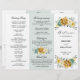 Modern elegant spring / midsummer tri fold wedding program features a bouquet of soft watercolor mustard yellow roses / peonies with greenery lush green leaves / botanical leaves / eucalyptus / succulents. Please find more matching designs and variations from my "blissweddingpaperie" store. And feel free to contact me for further customisation or matching items.