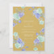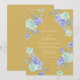 This design features a rich mustard yellow background accented by artistic watercolor floral arrangements. Soft periwinkle and mint green roses create a romantic and airy atmosphere across the composition. The vibrant colour palette balances warm golden tones with cool pastel blooms for a sophisticated seasonal aesthetic. Lush foliage and delicate petals provide a timeless, nature-inspired feel.