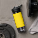 Bold and bright with contemporary simplicity, this custom mustard yellow water bottle design has modern typography spelling out your monogram initials in black lower case type face with your name in all caps in a smaller font size placed below your monogram for a professional contemporary look. Take along this attractive personalised water bottle wherever you go! It is a great way to compliment your personal business branding.