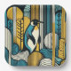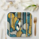 Mustard Yellow Teal Blue Penguin In Retro Geometry Paper Plate