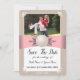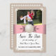 Muted Blush & Tan Pearl Ribbon Photo Save The Date Invitation