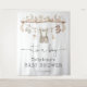 This tapestry is an exquisite blend of modern design elements and bohemian elegance, featuring a charming illustration of a baby boy outfit and an array of delightful baby elements such as toys and shoes, all depicted in soft, muted, gender-neutral tones. It's the perfect way to welcome guests to your special event, creating a warm and inviting atmosphere.