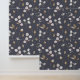 A seamless pattern featuring delicate botanical elements on a deep, muted background. Soft, pastel-coloured flowers and leaves create a gentle, elegant contrast against the dark backdrop, evoking a sense of calm and timeless beauty.