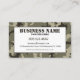Keep it subtle yet strong with this muted green camouflage business card. Featuring a soft camo pattern in desaturated green tones, this design is perfect for professionals who want a rugged, grounded aesthetic without going over the top. The front showcases a clean white stripe for your custom business name and title, while the back includes a white box for contact information. Great for outdoor businesses, survival instructors, tactical brands, or eco-conscious entrepreneurs. Fully customisable to suit your needs.
