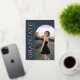 This muted navy photo graduation announcement blends timeless serif typography with a modern, editorial layout for a polished and sophisticated look. Soft ivory lettering and rose gold foil accents highlight the graduate’s name, class year, and school while keeping the focus on the main photo. The fully customizable front allows you to personalize all details, and the coordinating back features a matching navy background with a four-photo collage template for additional senior portraits. A refined graduation announcement designed for those who love classic design styled in a modern, elevated way. © Kimbellished, LLC