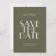 This modern save the date wedding card features clean minimalist typography paired with a muted olive green background for a calm, natural, and contemporary look. The soft green tone works beautifully for couples inspired by nature, understated elegance, and modern woodland aesthetics. The back of the card includes space for a favourite photo along with your wedding website and a QR code, allowing guests to quickly access important details with a simple scan. Ideal for outdoor celebrations, woodland inspired weddings, forest venues, and garden settings. This design feels organic while remaining refined. Personalise with your names, wedding date, location, photo, and custom link to create a save the date that feels balanced, intentional, and effortlessly stylish. Available as both a printed card and a digital download.