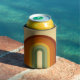Retro rainbow design. Rainbow layers in muted colours, orange, red and green. Groovy retro rainbow gifts, home decor. Retro rainbow seventies can cooler.