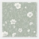 A beautiful hand-drawn floral pattern featuring delicate white wildflowers on a muted sage green background.