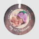 My 1st Christmas Baby`s First Rustic Pink Wood Photo Ceramic Ornament. Rustic dark pink wood background with a photo in the round frame and text in a white trendy script. Sweet Christmas keepsake for baby`s first Christmas.