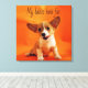 This cute and adorable puppy is all ears! With a bright orange background it is ready for you to take home. If you, or someone you know, loves animals then this is for them. Cute dog meme. Trending puppy pictures.