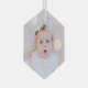 Your baby's photo on a glass ornament Upload your own image to create Christmas tree ornaments for yourself or give as a gift to family, friends, parents and grandparents! The word love in a check script is featured over your photo on the front or delete it.