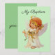 A cute angel with wings, red hair a white garment and a crown of yellow flowers.