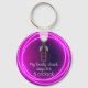 Round button keychain features fun neon text "My Body Clock Says It's 5 o'clock" and a neon wine bottle in hot pink neon circles.Keychains make memorable gifts for family and friends or create for yourself.