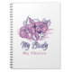 This stylish violet floral Illustration notebook combines functionality with a powerful message. The design features soft pink to violet tones, showcasing two flowers placed side by side, with exposed stamens and delicate leaves, emphasising the importance of feminism and bodily autonomy. Beneath them, the bold slogan "My Body My Choice" serves as a clear statement supporting women's rights and abortion access, as highlighted by landmark decisions like Roe v. Wade.