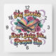 A vibrant and colourful retro-style design showcases an open book, roses, crescent shapes, and stars. The bold text reads, "My books don't judge me, people do." This unique design is available on a wide range of products.