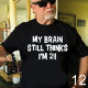 I give wanted to give this a 4 instead of a 5 because these Basic DARK T0shirts run unexpectedly SLIM or Narrow. Which is great if you do not have a potbelly, but I have a paunch. It isn't the shirt's fault that I've got a beer belly. The design and shirt itself is a quality cotton shirt. The color is more of a deep purple, but still a very pretty color. The Basic DARK T-shirts run a bit SLIMMER than the Basic Ts. The neck is a fraction narrower (or seems to be narrower) also. I'm a paunchy middle-aged woman and my neck is 12 inches (31cm) thick and the neckline fell about the same as in the photo of the man, and I had the desire to tug it a bit. So if you're a thick necked man or like loose shirts, be aware these are slimmer shirts. Once I get rid of my lockdown paunch it'll look great. The shirt washed well in cold water with no apparent bleeding. We don't have a dryer, so it hung dry. Did not shrink. Love the colors and the design. The design looks smaller on my shirt than it does on the model on-line. But still, it looks good on the shirt. The printing looks as it does on the model, just the size seems fractionally smaller. Washed garment in cold water, hung dry and design appeared unaffected.