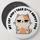 Funny badge for cat lovers featuring a smug looking cat with the words "My Cat And I Talk S**T About You" in black text. This is a template if you wish to change the text.