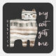 My Cat Gets Me Funny Cat Square Sticker. Cute cat with funny cat quote, My Cat Gets Me. Features grunge watercolor cat art plus option to add a name of choice. Add yours to make this your own! Perfect For Cat Lovers, Pet Lovers, Cat Lady, Cat Mum and Cad Dad.