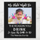 A hilarious wine bottle label with the quote “My child might be the reason you drink – so have this bottle on us!”. Add your child’s photo for an extra personal touch. Perfect as a teacher appreciation gift, thank you present, or even for babysitters and grandparents who deserve a laugh. Designed by The Arty Apples Limited.
