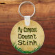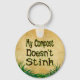 My Compost Doesn't Stink funny gardening keychain with messy brown and leafy green letters for gardeners who recycle their clippings and greens into rich compost.