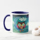 Lovely and colourful owl standing on the crescent moon. Original design by Sandra Vargas.