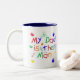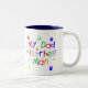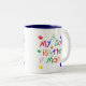 This adorable coffee mug will be treasured by the kids' Dad for Father's Day or birthday or any other celebration. It says "My Dad is the man" and has childish like drawings and hand prints all over. It's bold and colourful in red, blue, green and orange. You can leave the inside of the cup navy blue or change it to any one of the other coordinating colours.