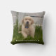 Add your favorite pet photo to the front and back of this throw pillow and add any personalization on the bottom.